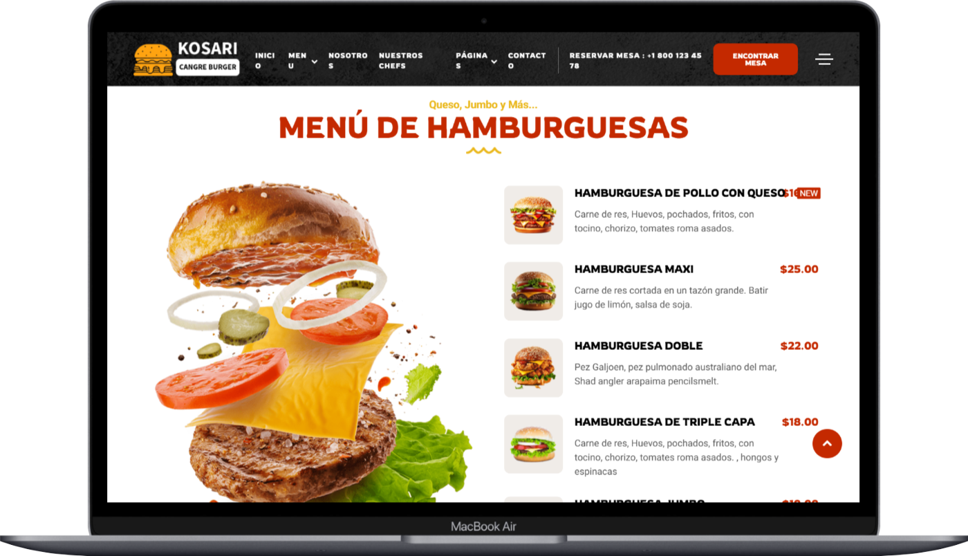 Cangre Burger es una plantilla HTML multipágina diseñada para restaurantes de carnes, hamburguesas, comida rápida, mariscos, bares, catering, negocios de comida y sitios web para portafolios de chefs personales.