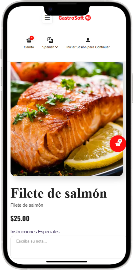 Página de detalles del menú