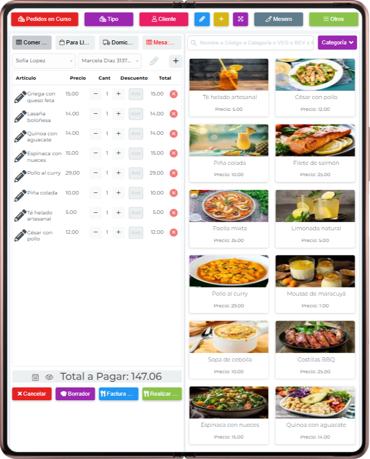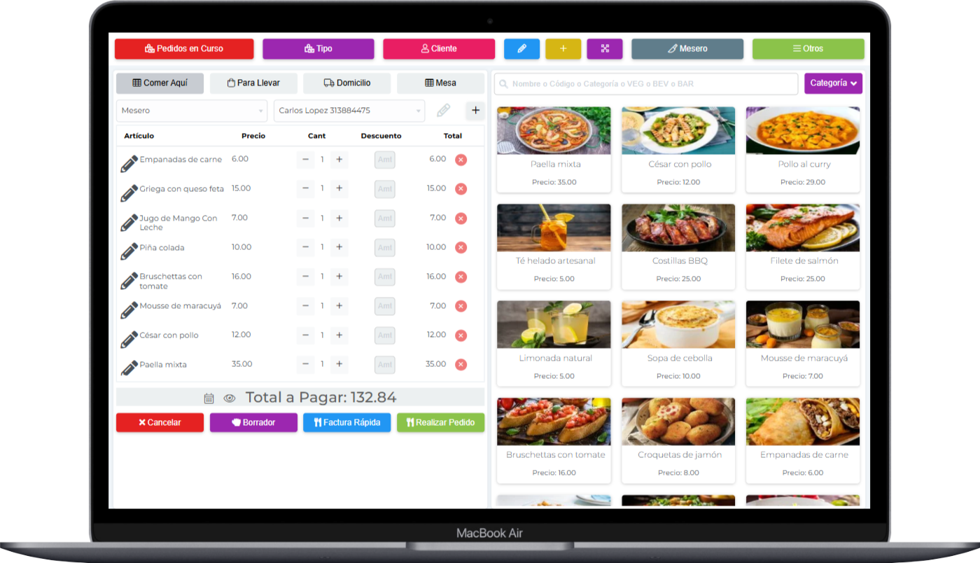 sistema completo para restaurantes, cafeterías y negocios de alimentos que integra pedidos en línea, reservas, punto de venta (POS)