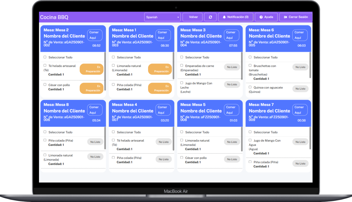 Seguimiento en vivo del pedido para clientes y cocina.