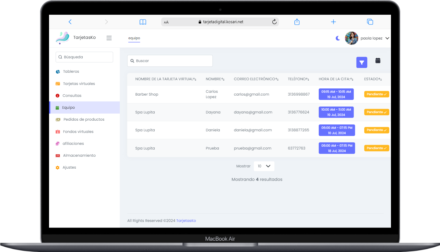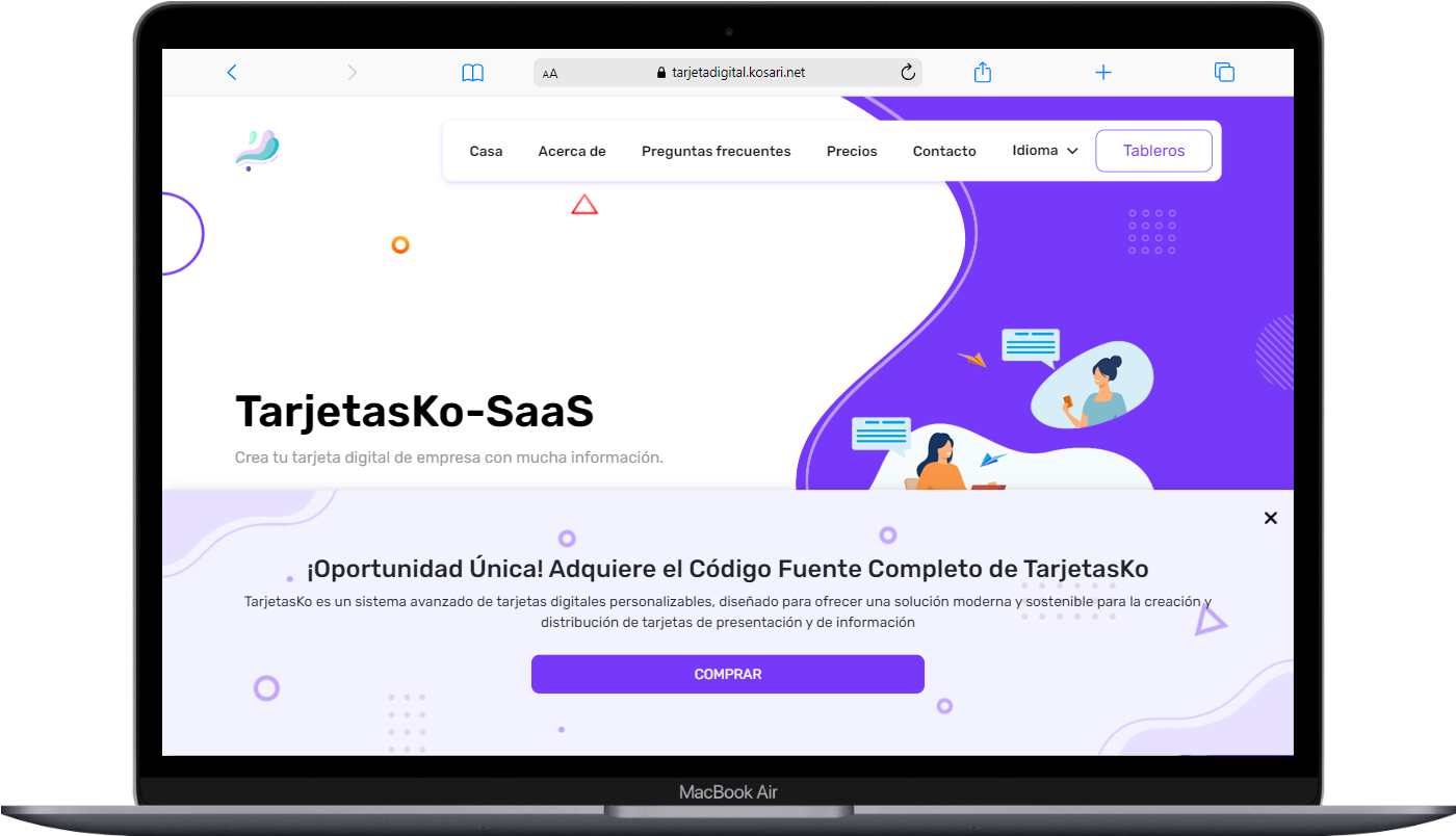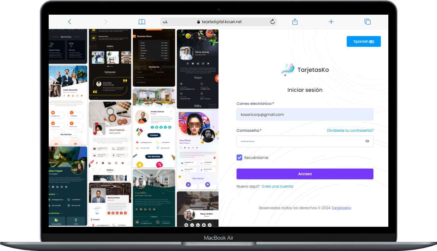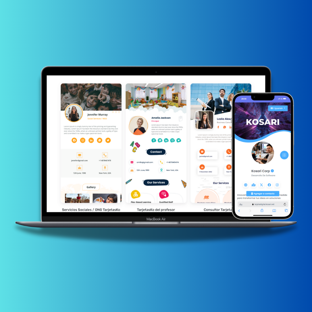 TarjetasKo es un sistema de creación de tarjetas de presentación digitales multiusuario, que permite a muchos usuarios crear sus tarjetas de presentación o tarjetas digitales con mucha información y pueden compartirlas con sus clientes.